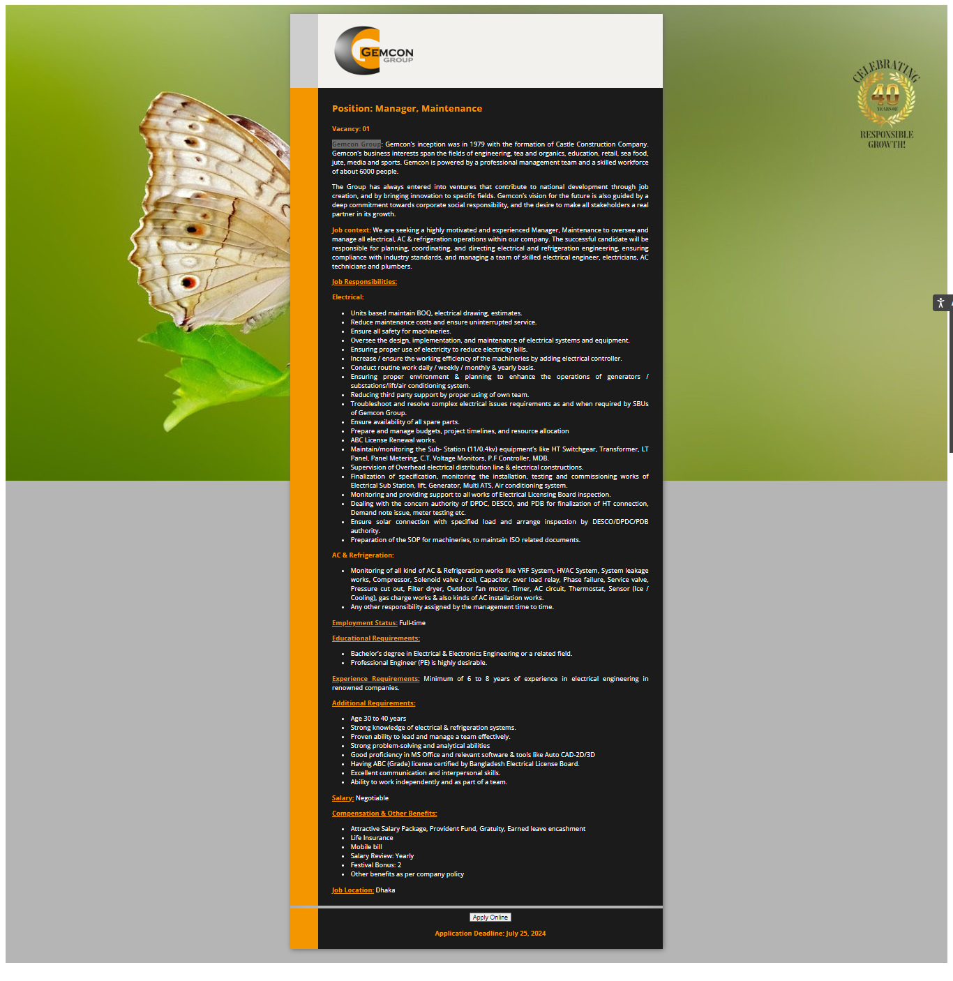 Gemcon group job circular 2025. Recently Posted group Job Circular is a very attractive most popular new company job circular in Bangladesh. It’s a very good job to apply here. A good news job notice is that right-time posted Gemcon Group’s new jobs circular on my website jobsnotice24.com. If you are a qualified candidate and interested in applying for this job, you should go through this post. It’s a trusted Non-Government job in Bangladesh.