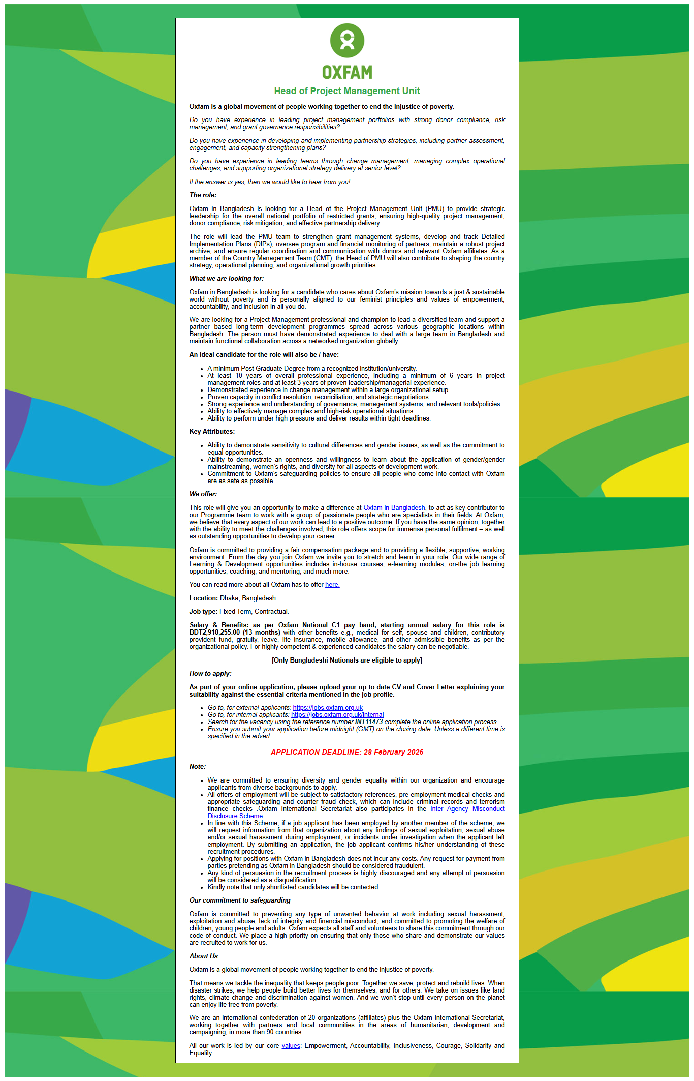 Oxfam Bangladesh job circular 2026 has been published an attractive job circular on its official website www.oxfam.org. It’s an international organization. They offered attractive jobs position on the circular. So, they offered attractive salary ranges and other services for job seekers. We have collected the Oxfam Bangladesh Job Circular Online 2026 from their official website. So, you can check here if there is any position that fits you.
