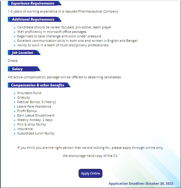 All the interested and qualified candidates are eligible to apply for this Popular Pharmaceuticals Ltd job circular 2022. Job circular of Popular Pharmaceuticals Ltd related information has given above. If you want to get more company jobs circulars in Bangladesh, follow our All Govt Jobs Circular 2022 website regularly.